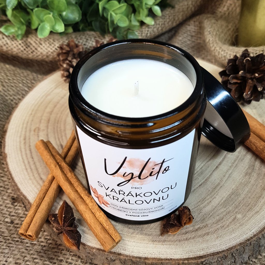 Sójová svíčka je vyrobena ze 100% přírodního sójového vosku a ovoněna nádhernou vůní svařáku. Je vylita do elegantní tmavé skleněné nádoby s černým víčkem a ozdobena originální etiketou.